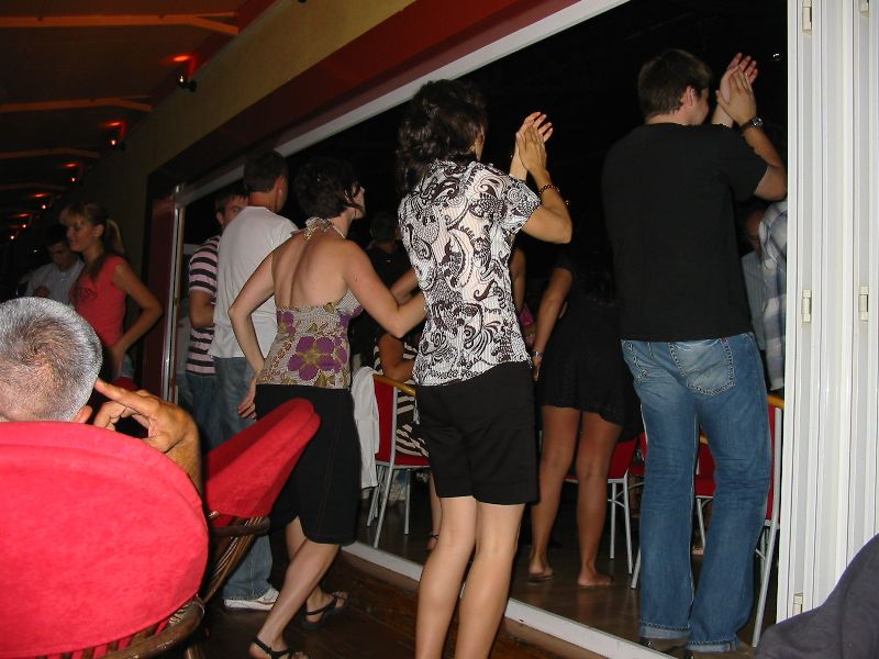Jen and Gorana dancing. They talked Charles into joining them, but I resisted. I remember there was a blonde glamazon at the next table dancing very sexily with an ass and everything. A rare case of a girl who likely outweighed me but it didn't matter.