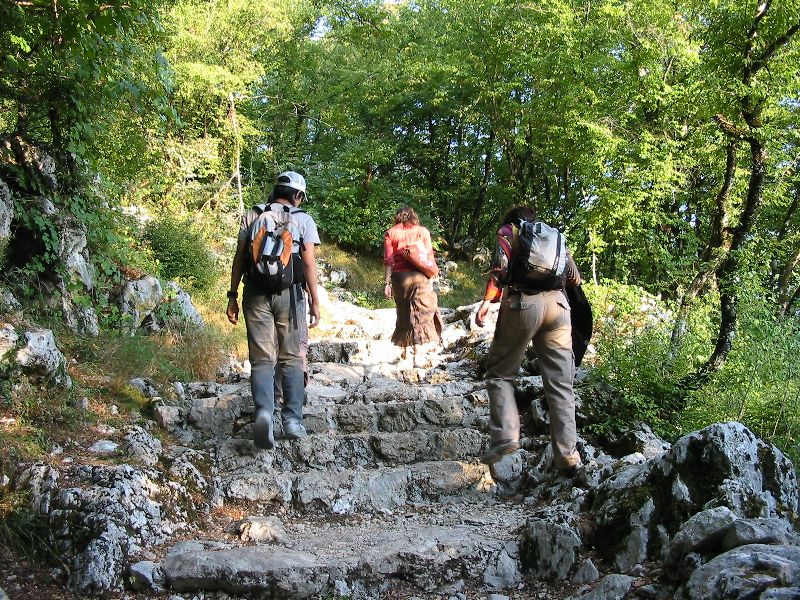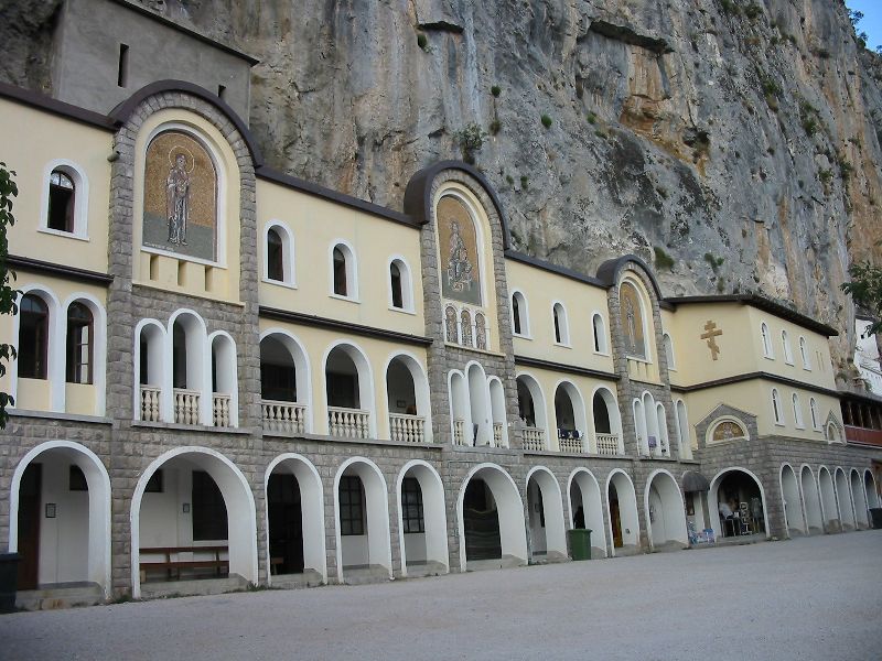 We arrived at Ostrog Monastery. There were no single rooms here, or rooms for couples. All 4 guys had to stay in one room and all 9 girls in another. Under the bed in my room was a pair of forgotten sandals, and I remembered the John Kerrys (flip flops) I lost in Rio, and figured I was now Even Steven. I didn't wear or keep them, though. After we checked in, the 4 guys assembled outside to wait for the rest of the group. I surmised that the girls were having a slumber party already, and that they'd be a while.