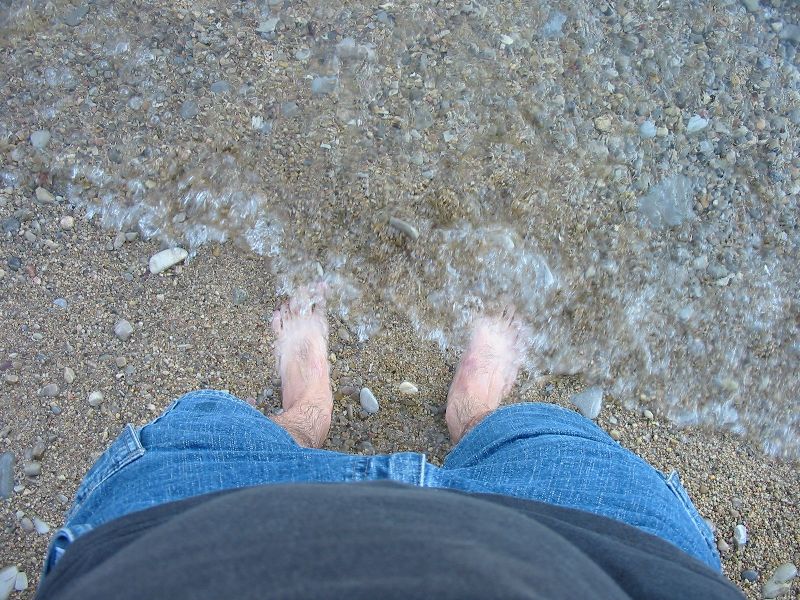I told some people at work that this trip would include my first partial immersion in a sea (the Adriatic, as opposed to an ocean, lake, river, etc.). Here it is. My feet aren't really that small; they're partially buried in the pebbles. It's an illusion like Lenny Randle's missing hand.
