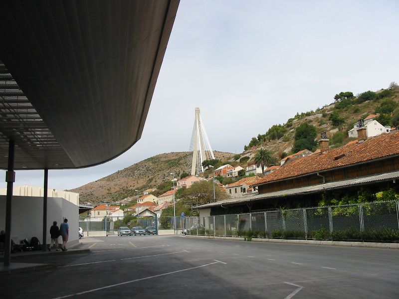 The bus left around 7:50am and we arrived in Dubrovnik, Croatia (country #39) before noon. First time my country count has exceeded my age since I was 0 years old. Rounding the bend and seeing the city for the first time was like when you go around the mountain and get your first view of Vegas, or around that bend on the Schuylkill Expressway and seeing the Vet. I cleverly took a window seat on the left side of the bus so I'd get that view, but my window was so caked over with crud that photography was impossible. Also got a good view of the Tudjman Bridge.
