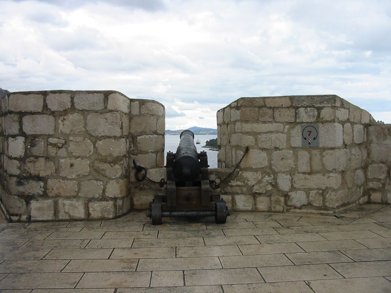 Box of Mystery. Or perhaps the Croats took possession of Al Gore's lock box, putting away their money for a rainy day. And that day is today. It had been raining lightly off and on, but right about here it started coming down hard. I was getting wet despite an umbrella, and I couldn't keep my camera lens dry to take any photos. Fortunately some French tourists invited me into their turret where I waited until the rain eased a bit. It didn't smell too bad in there, unlike some of the turrets that had been mistaken for turlets.