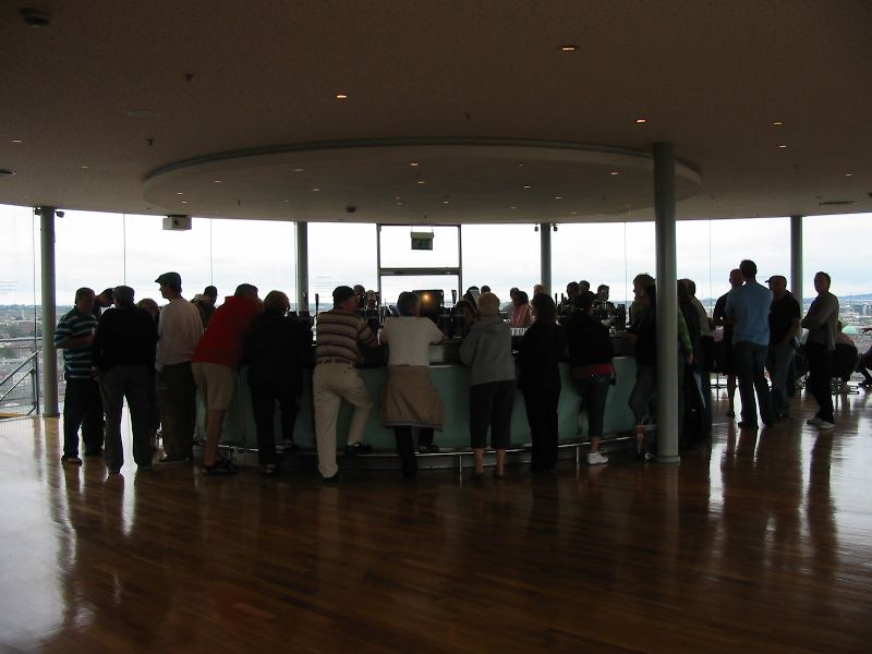 At the top (7th floor) of the Storehouse, which is shaped like a giant pint glass, is the Gravity Bar where you get a free pint of Guinness. Oh yeah, I had a sip earlier in the tasting room too. I asked the bartender for the shamrock in the head but she could not do it, and said that's something they do in other countries for tourists.
