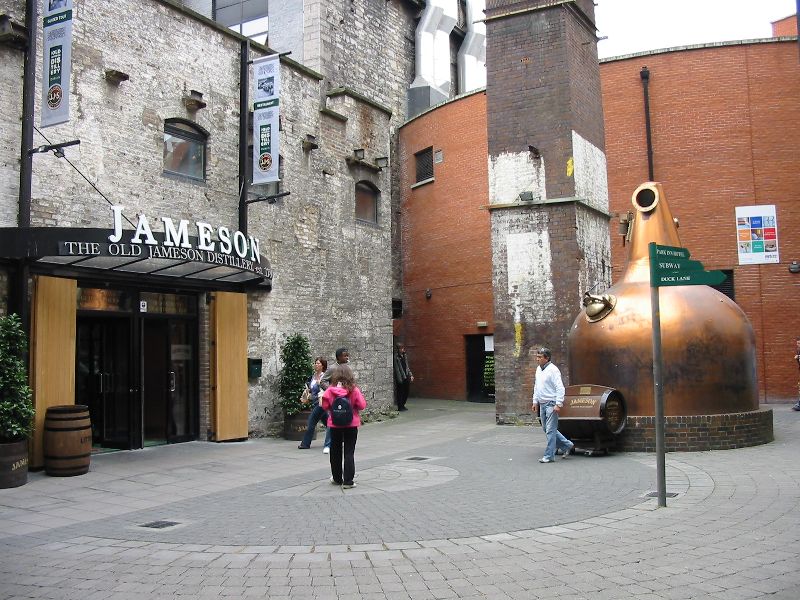 The tour isn't as substantial as Guinness. You see a short movie about the company's history (and I think the narrator said "hwiskey", but it was subtle), go through a couple rooms with barley and distillation apparatus and whatnot, and see another movie. At one point the tour leader Maria said something like "CO2 is toxic, as you all know." It had to do with lowering a guy into one of the vats with a candle to see if fermentation was complete. Huh? It'll suffocate you in the absence of sufficient oxygen, but so will any gas. CO2 itself is relatively harmless. But I didn't correct her--I'd already used the "I have a degree in chemistry...don't question me on this" thing with the group in Novi Sad and didn't want to flaunt my authoritah. Anyway, at the end of the tour you go to the bar. Everyone gets a glass of Jameson, except the 6 people who volunteered in the beginning, who get to be whiskey tasters. And they get a glass of Jameson too. Thanks to Poodawg for telling me to volunteer.