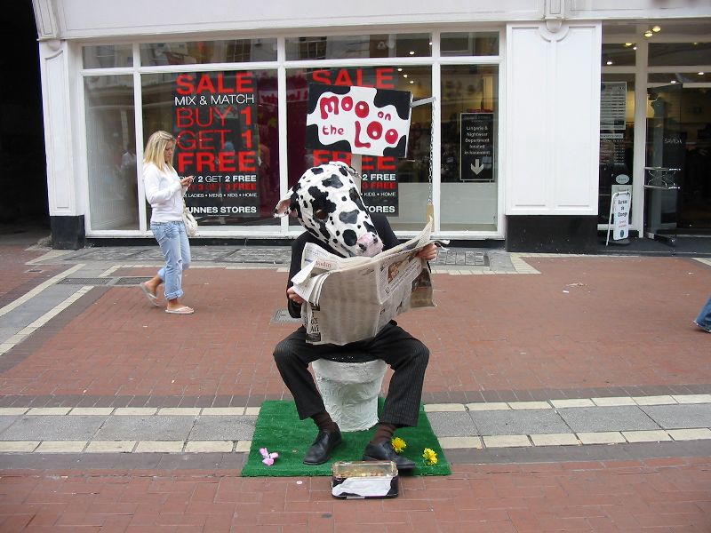 I could not find a shillelagh anywhere, but I found Moo on the Loo. He had a cow sound effect, but he thanked me in English when I tossed coins in his cow-colored tray. See, you bad-attitude beggars in Bosnia and elsewhere...you can have my money if you show some creativity and give me something in return, if only a funny photo. Put in some effort.