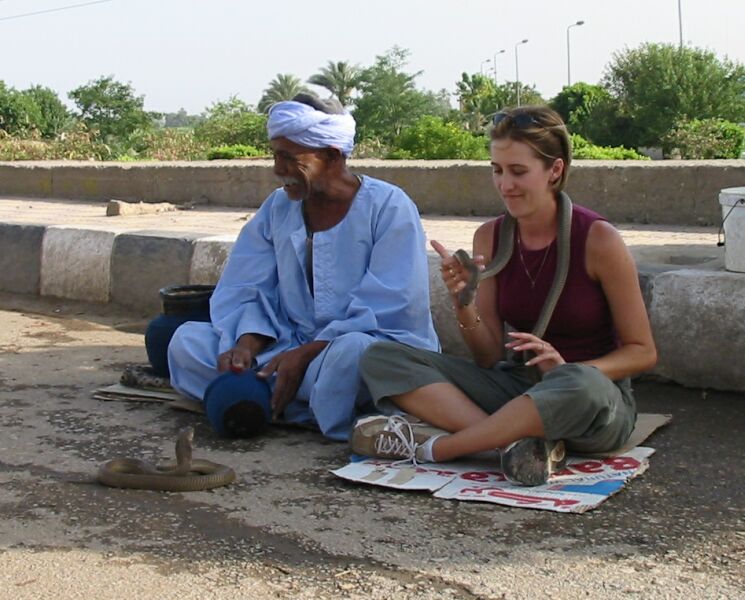 Tracey (from our group), several toothless cobras and a partially toothless guy.