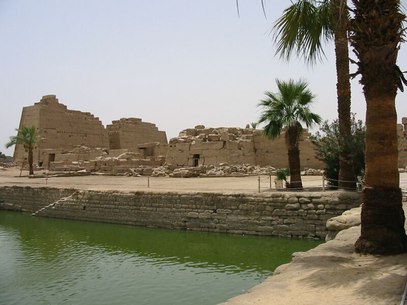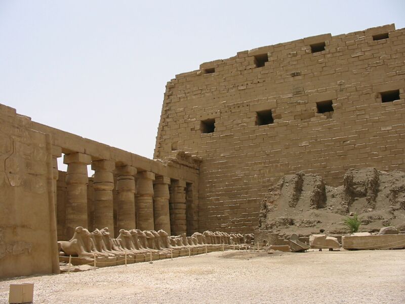 Great Court and outer pylon. The mud ramp on the right is left over from construction in the 7th century BC. It has barely rained since then.