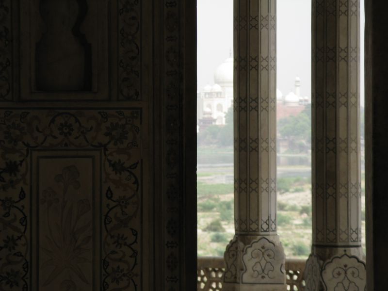 Taj Mahal from Khas Mahal. This is where Shah Jahan, who built the Taj Mahal for his late wife, was imprisoned for the last 8 years of his life and forced to look out upon his creation. I think our guide said that when his eyesight failed, someone put a large diamond here so that multiple images of the Taj would be projected onto the walls.