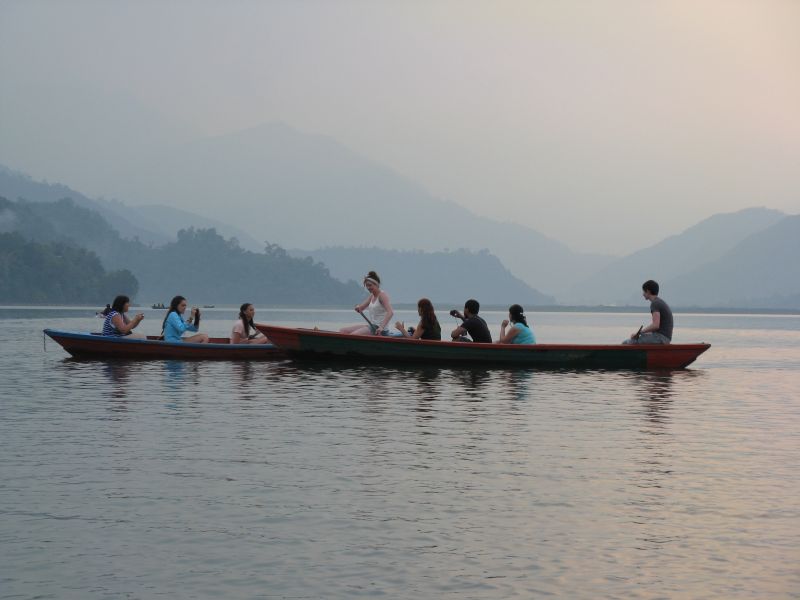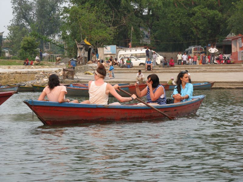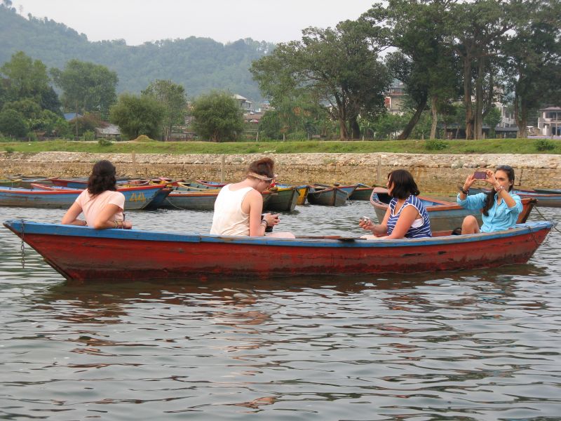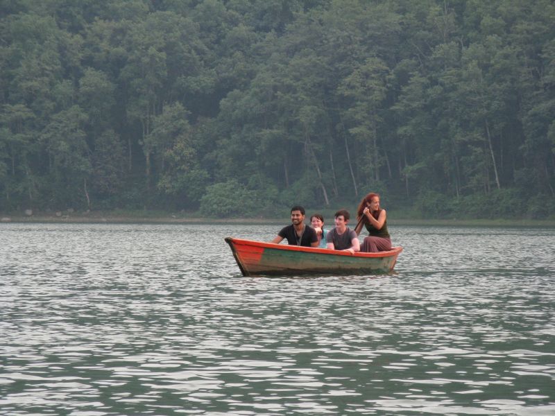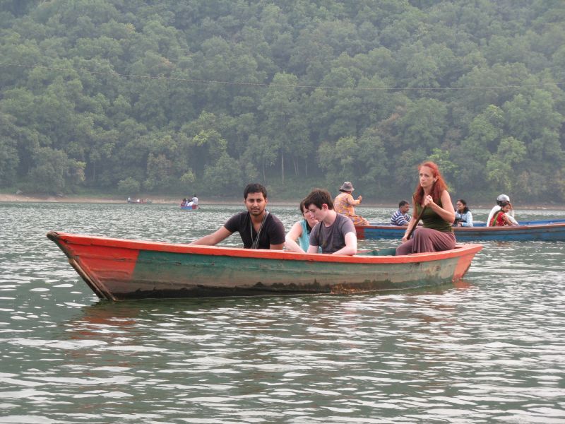 We walked to the lake (Fewa Tal) and most of us went for boat rides. It was an extra Rs 50 to hire a rower, which 4 of us in one boat did. Everybody else rowed themselves.